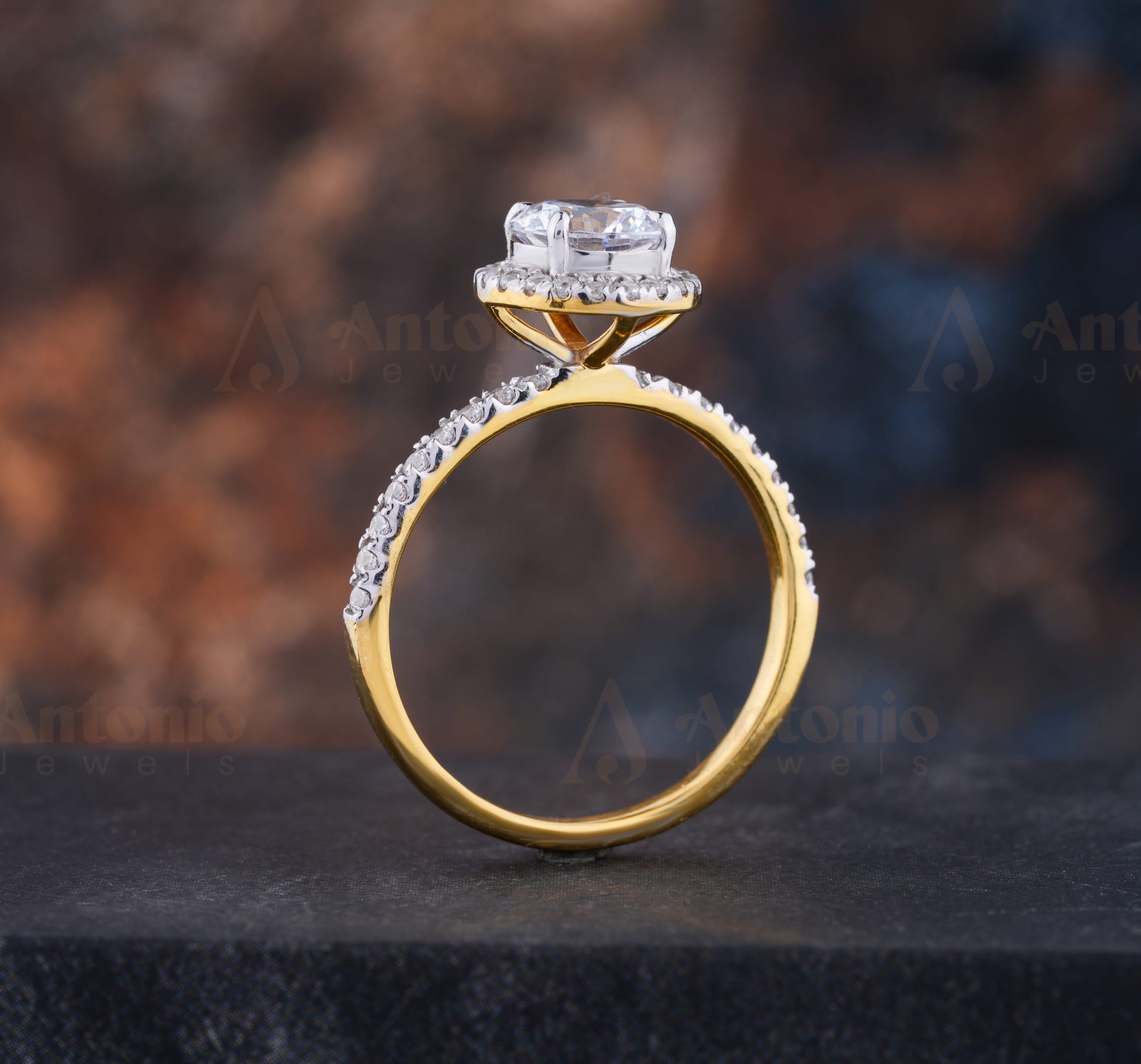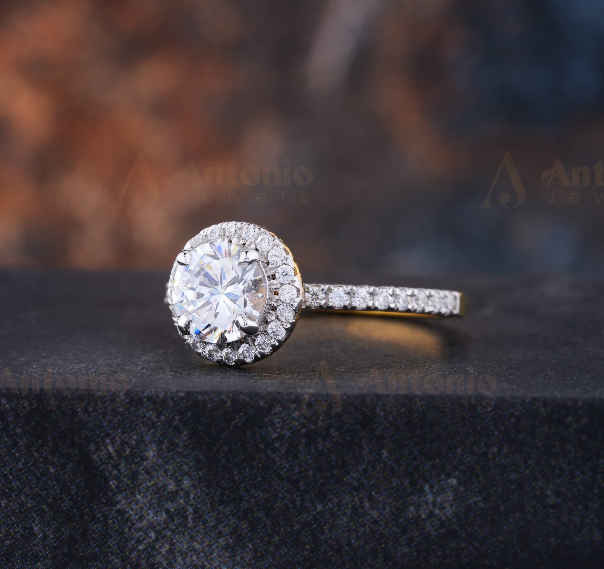 Half Eternity Halo Round Cut Moissanite Diamond Ring