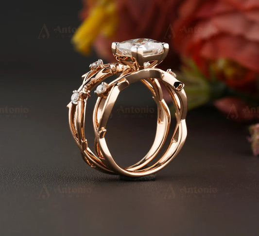 Halo Oval Moissanite Diamond Engagement Ring Set