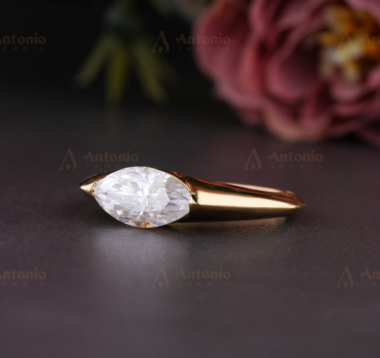 Hidden Halo Marquise Cut Moissanite Engagement Ring