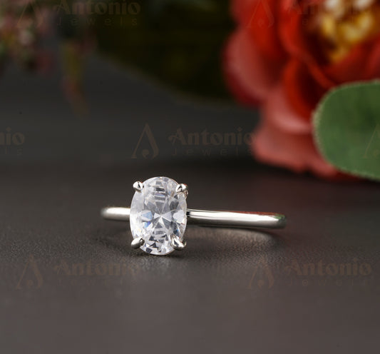 Solitaire Oval Cut Moissanite Diamond Engagement Ring