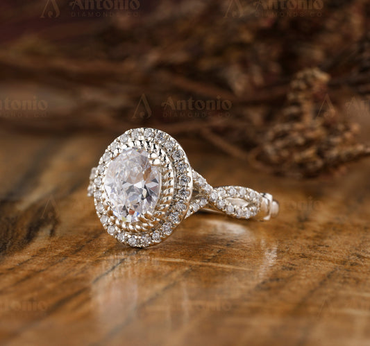 Halo Oval Luxury Party Wear VVS Diamond Ring