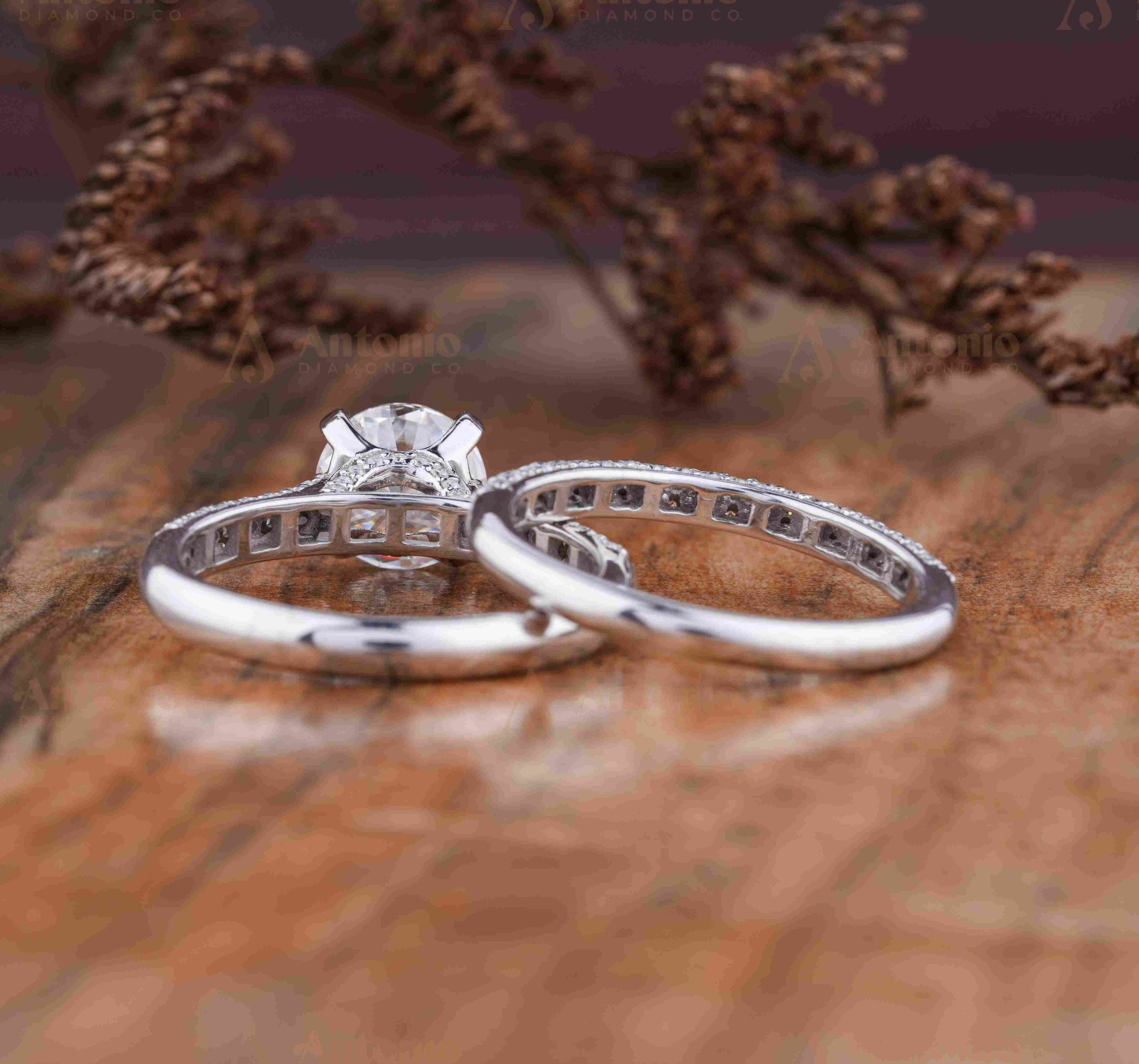2 CT Round Solid Gold Lab Grown Diamond Engagement Ring Set