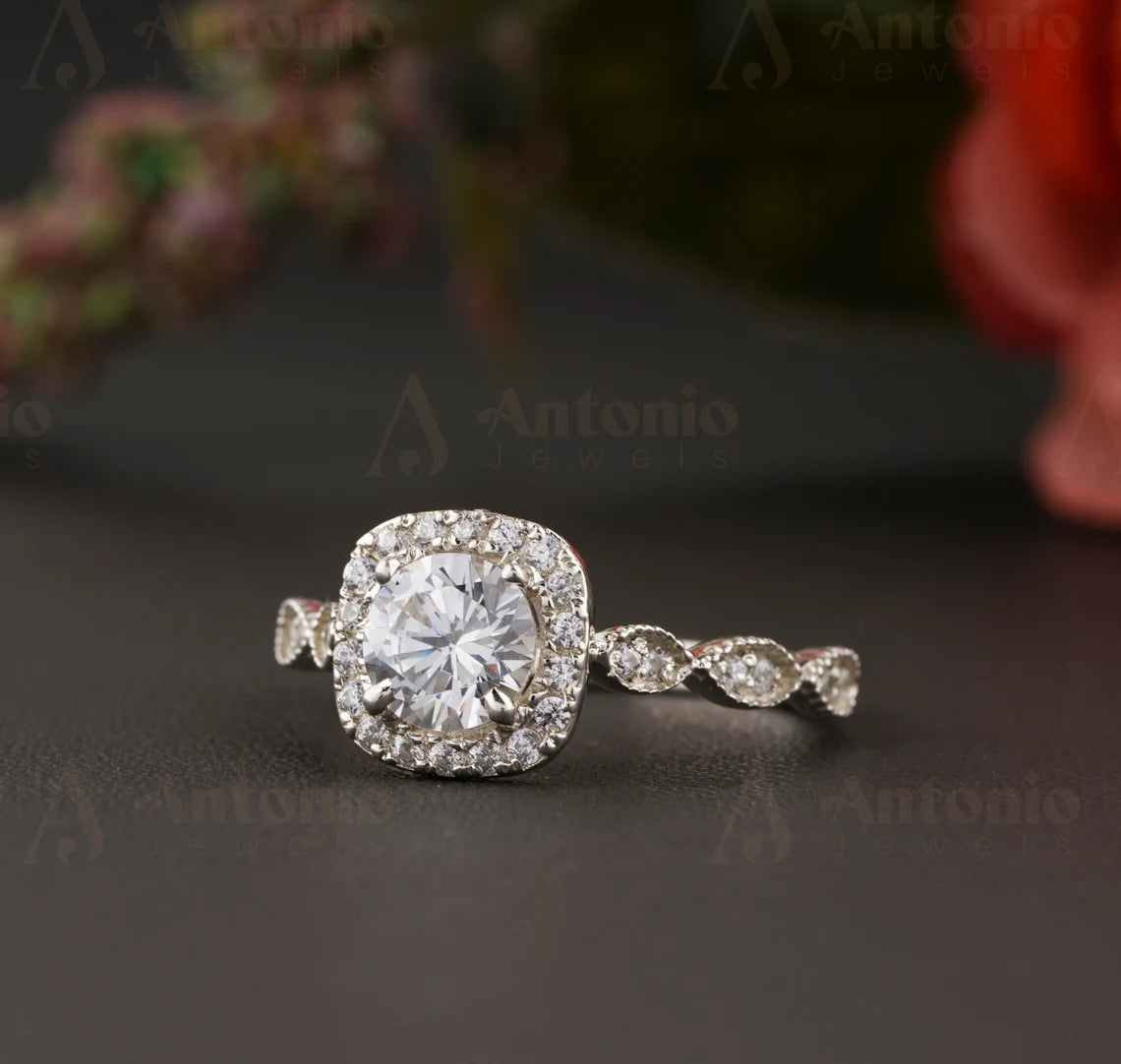 Half Eternity Moissanite Diamond Engagement Ring