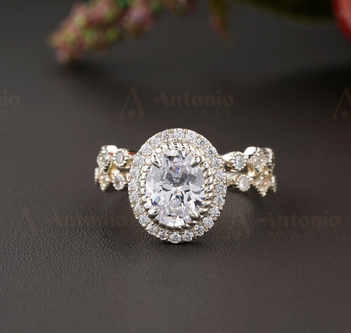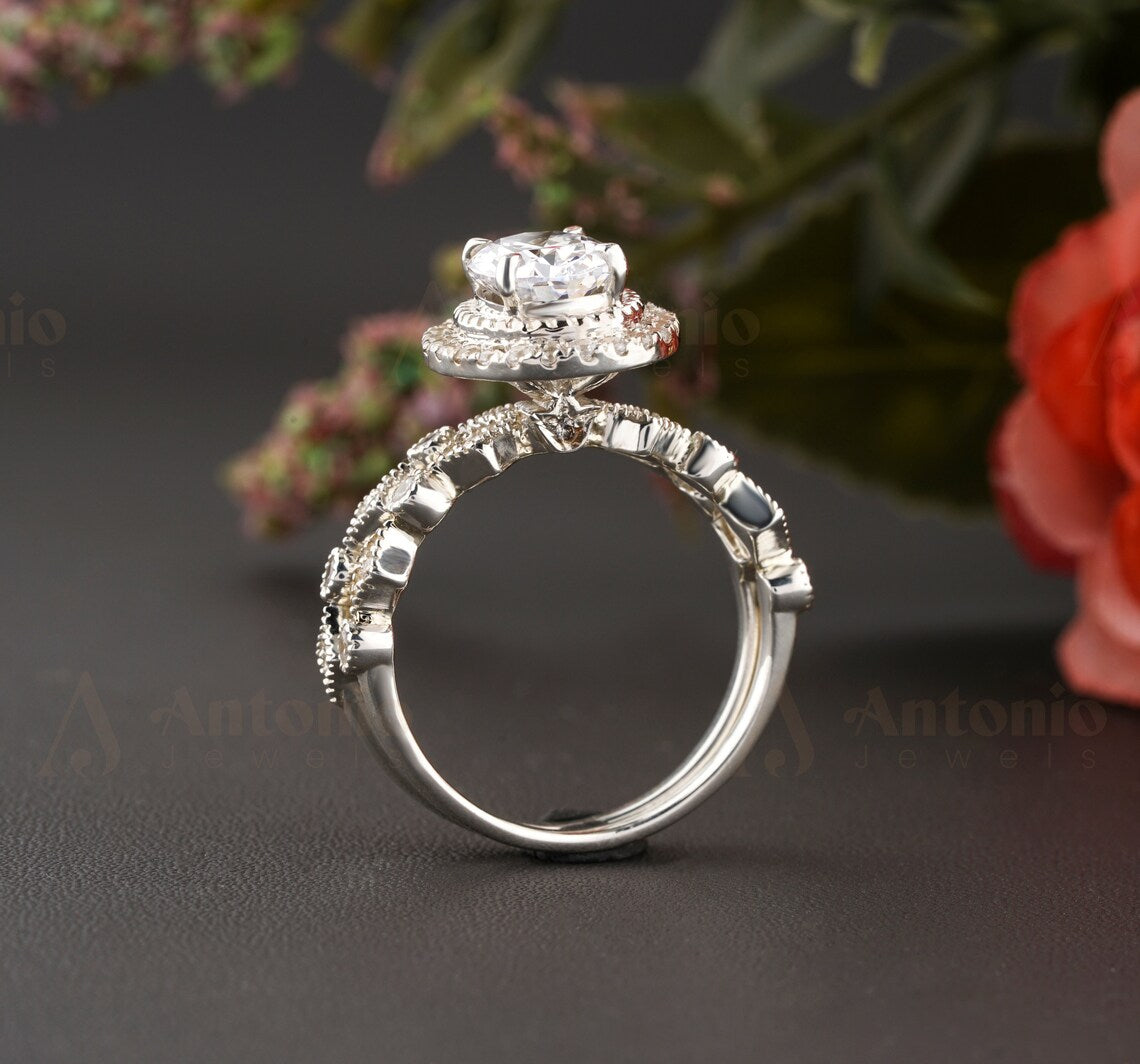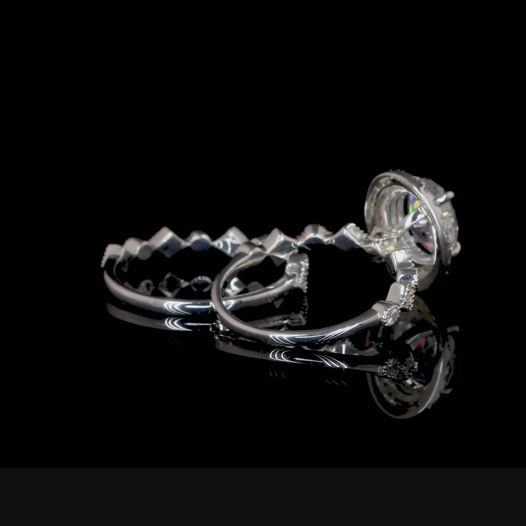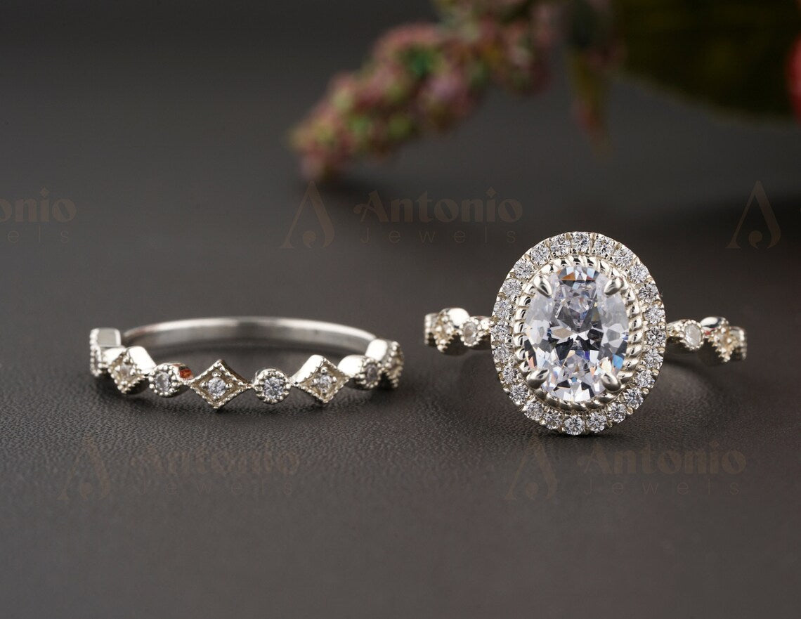 Halo Oval Moissanite Diamond Engagement Ring Set