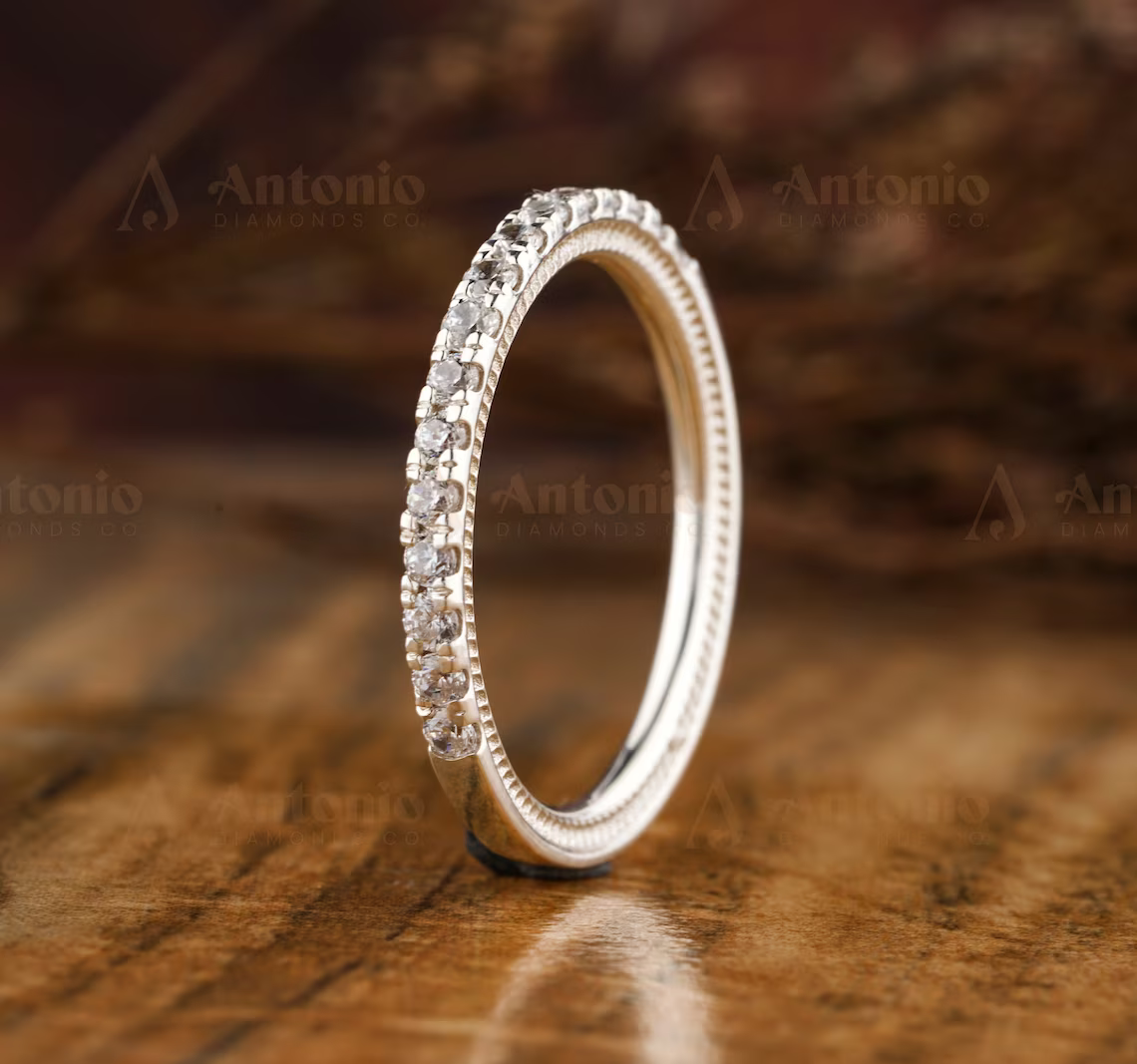 Round Cut Half Eternity Stackable Wedding Band