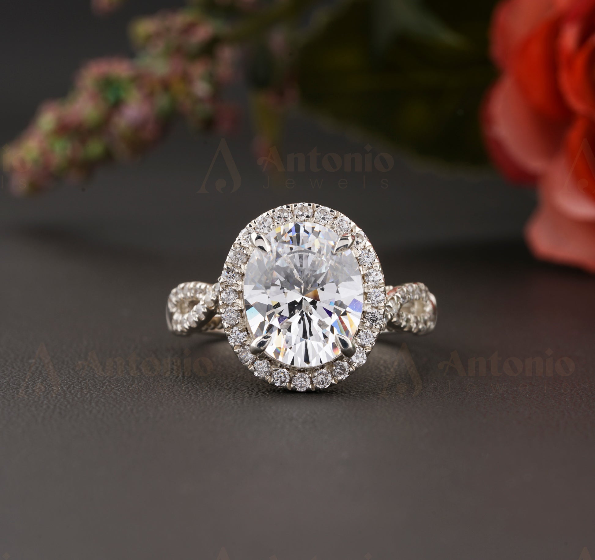Halo Oval Twig Engagement Ring