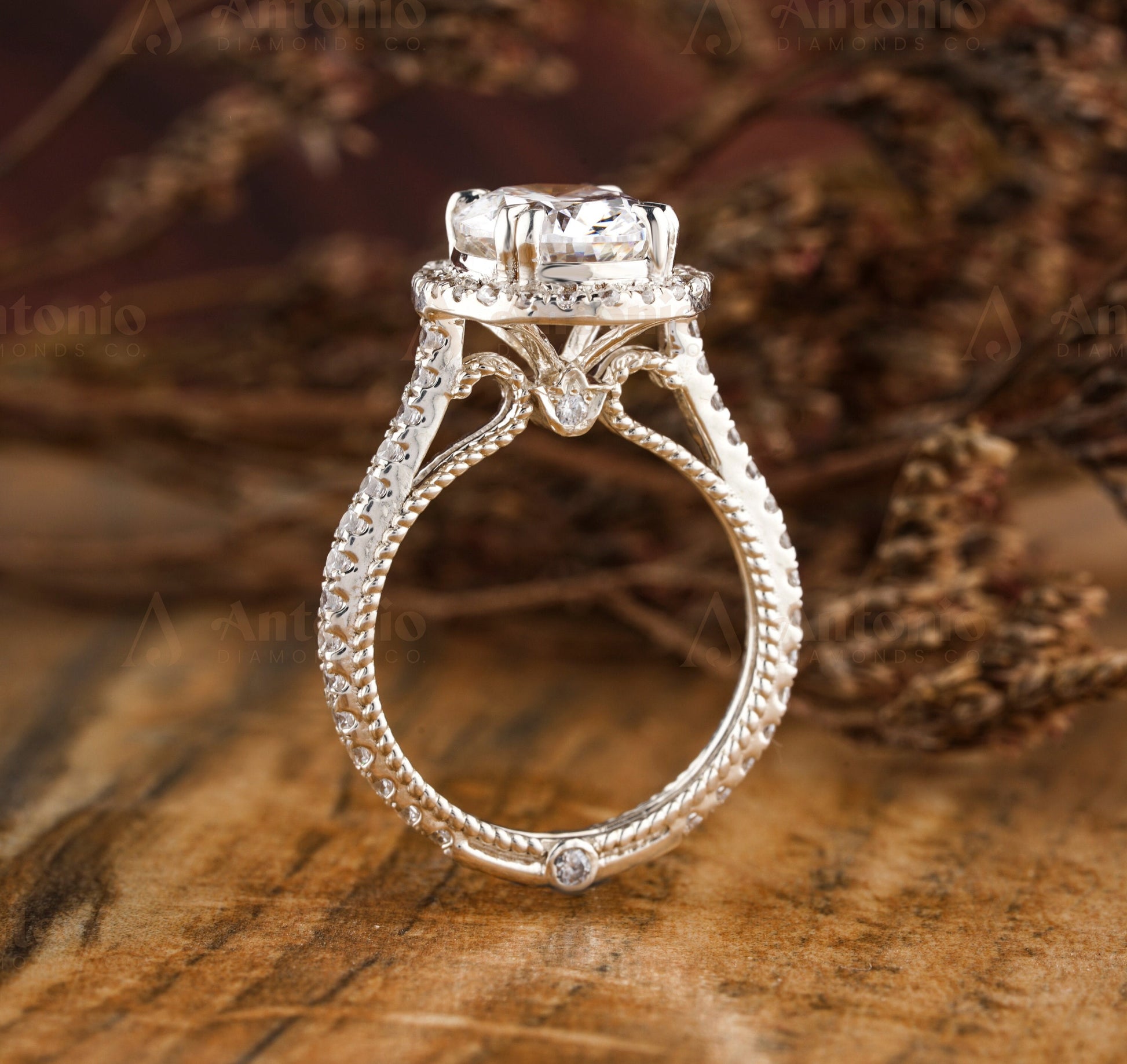 Unique Halo Oval Diamond Party Wear Ring