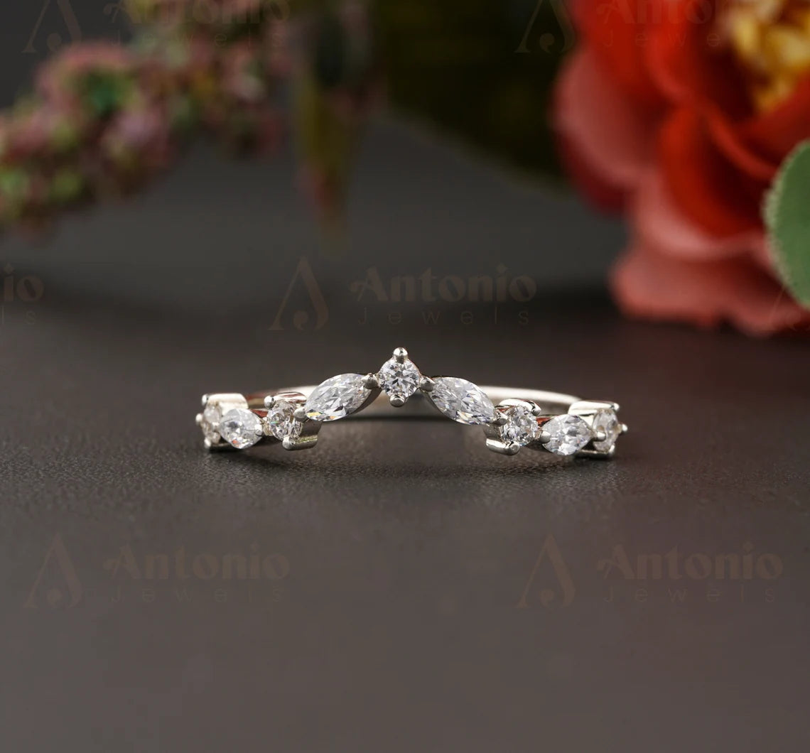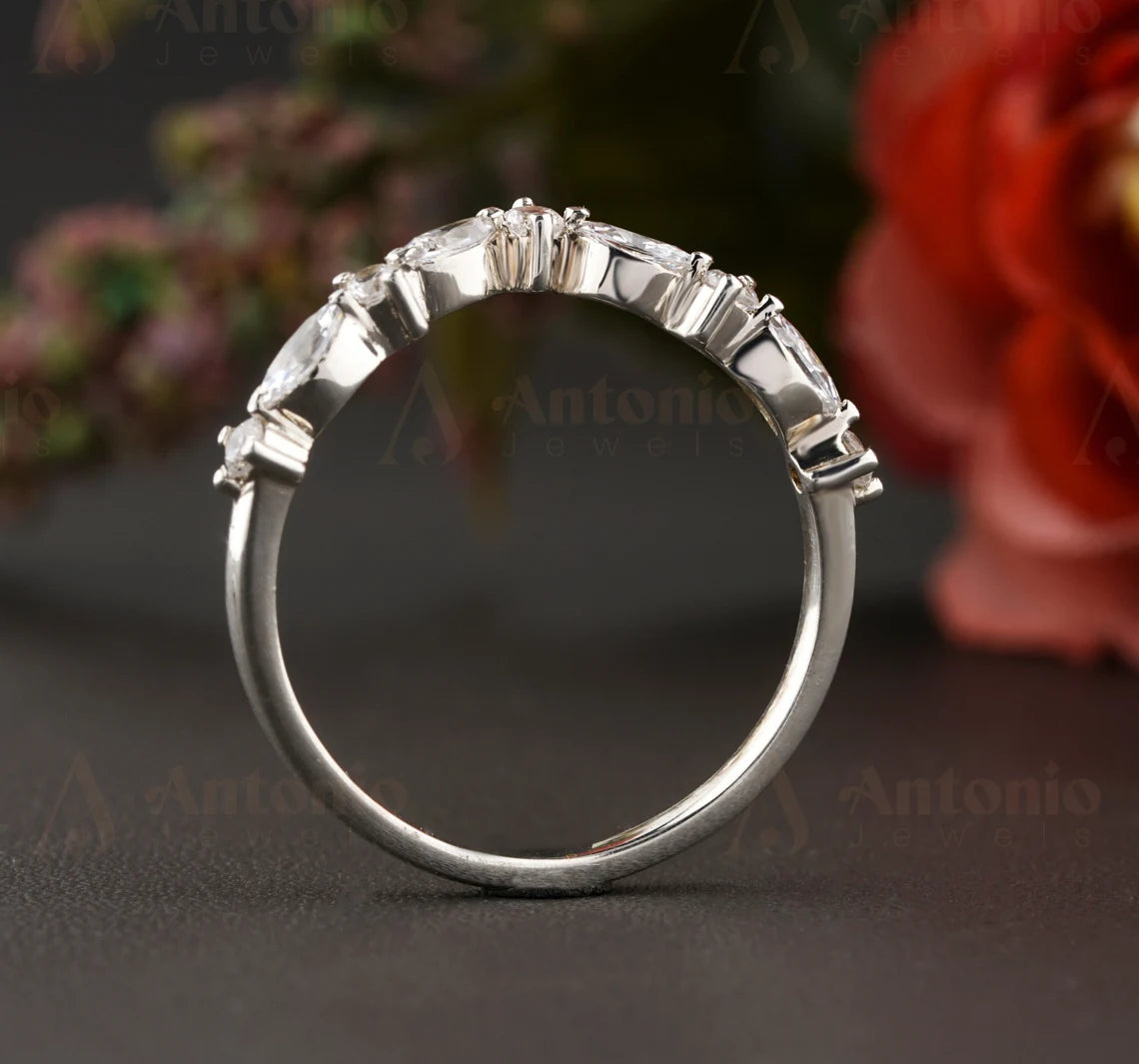 Chevron Moissanite Wedding Band